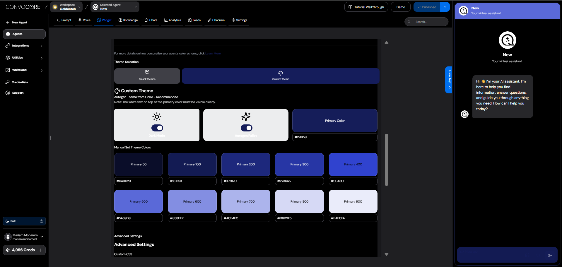 It’s essential to know how the agent behaves and looks before launching on your website or letting a client test it. Convocore has two options for testing, right from the agent designer:Prototype: