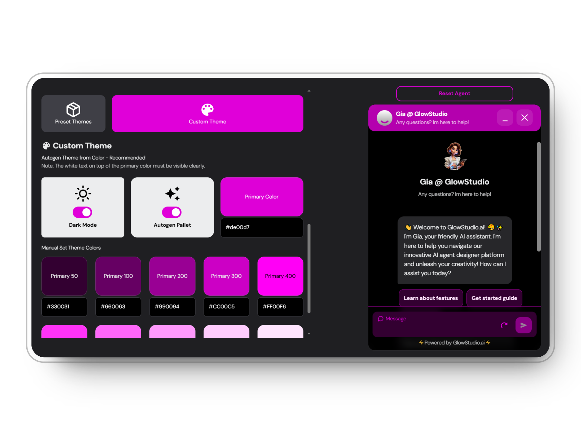Personalize your agent’s color scheme to align with your brand.If youre struggling to find your brands primary color. We recommend dowloading