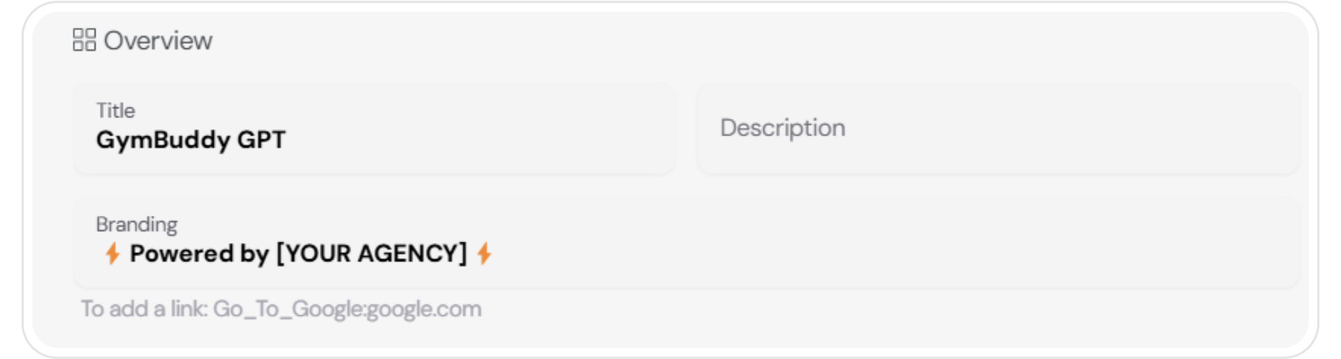 The Overview section allows you to customize your agents text to fit your client’s branding or your unique style.