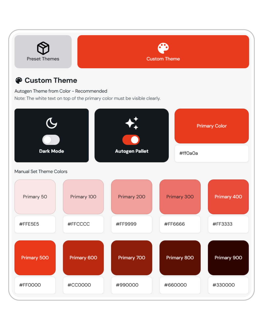 Recommended: Automatically generate a theme based on your primary color.