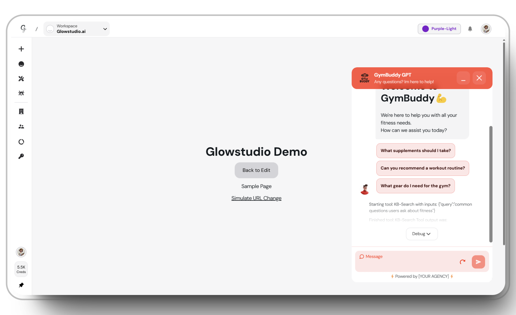 - It’s not always easy to visualize how the agent will look on a website. The demo link lets you test it out in chat bubble format, so you get an idea of how the agent will look your website.