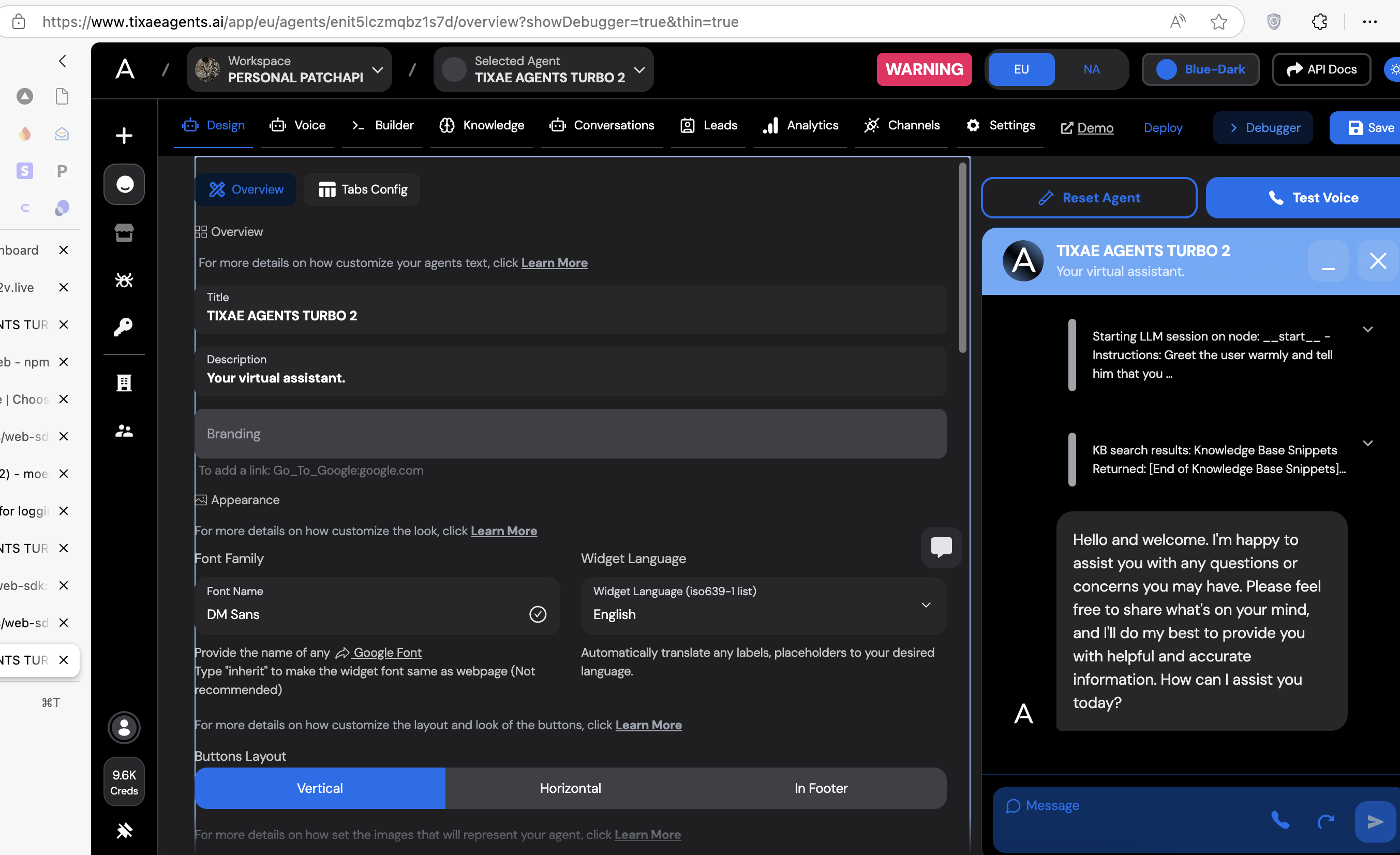 - Navigate to the Convocore Dashboard and create an agent.