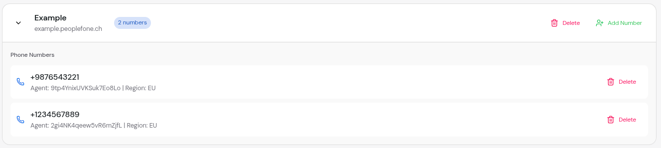 You can route multiple phone numbers to the same agent. This is useful for:- Different departments calling the same general support agent