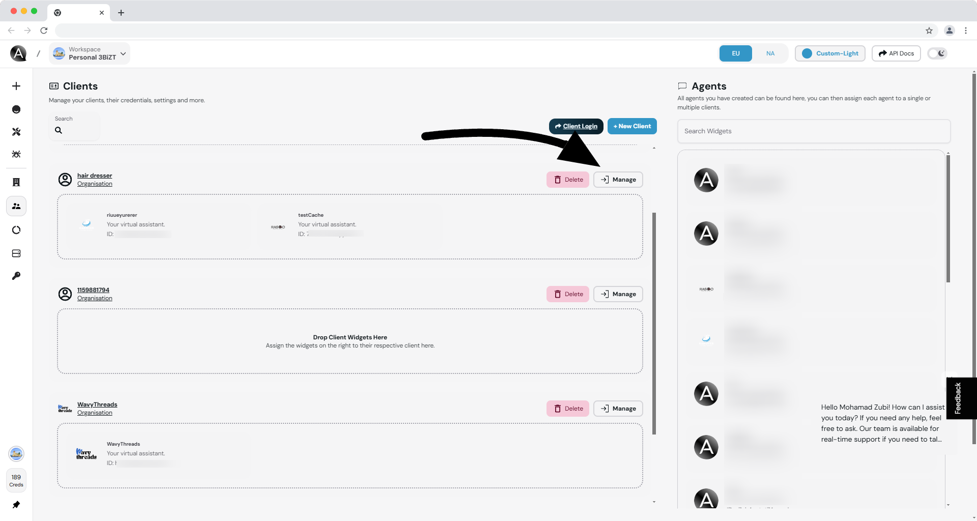 From the sidebar, click on the Clients tab to access the list of client organizations.