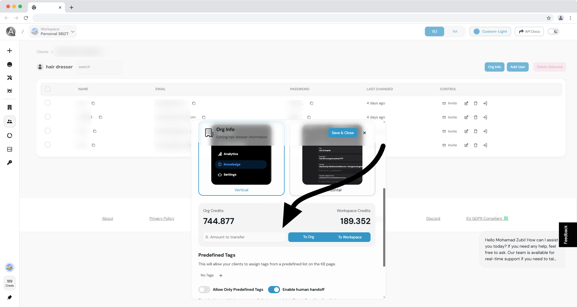 Agency owners can monitor credit consumption and transfer credits if needed.